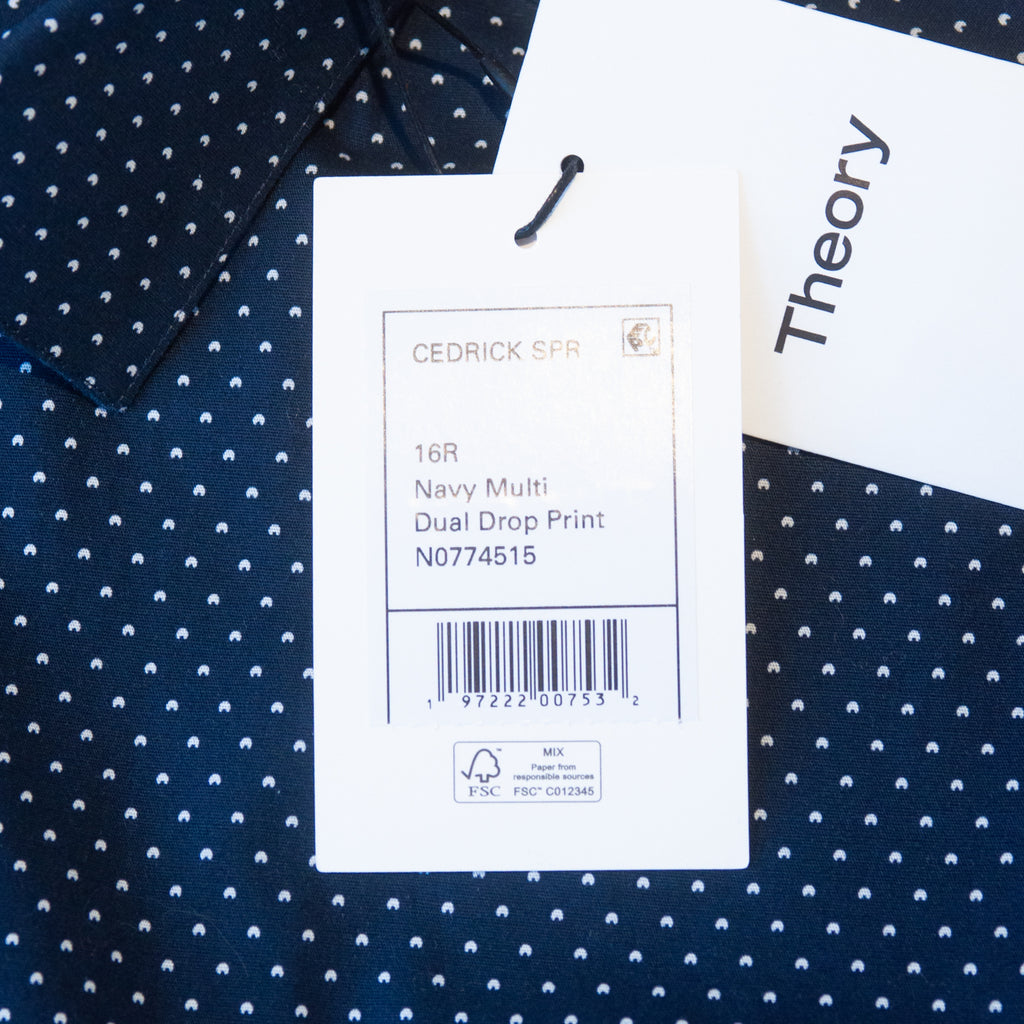 Theory NWT Navy Dual Drop Print Cedrick Dress Shirt