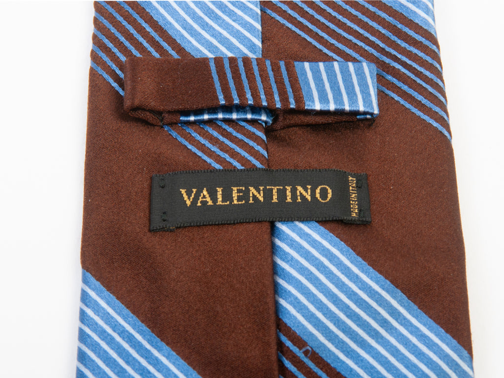 Valentino Light Blue on Brown Bar Code Stripe Tie