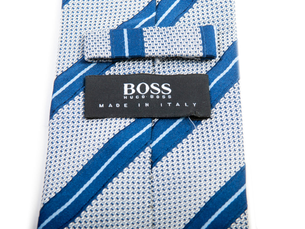 Hugo Boss Navy Blue on Grey Striped Silk Tie