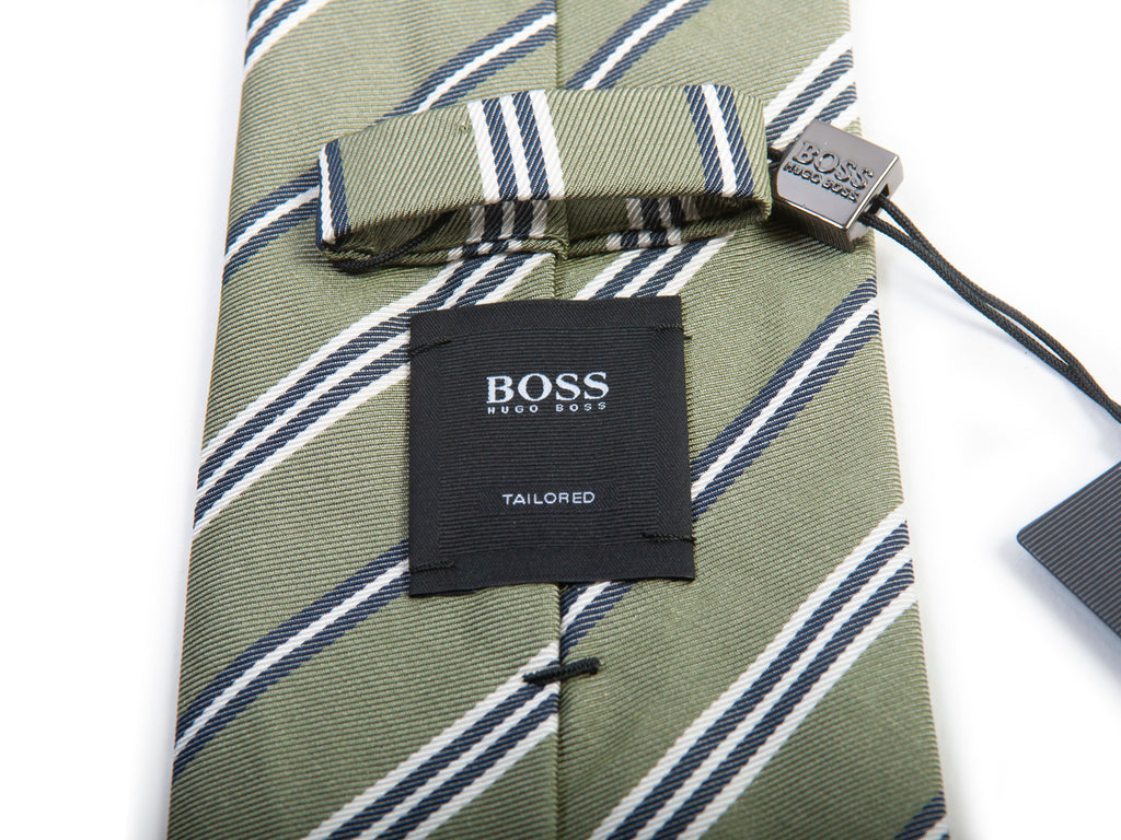 Hugo Boss Tailored NWT Green Striped Handmade Tie